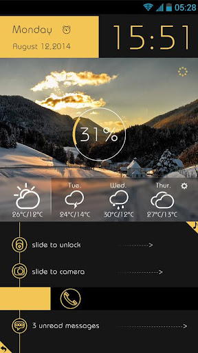 LOVE IS BACK is a GO Locker theme. It features a clear cut interface with stylish wallpapers against a blurred layer. You can check the most often-used information without unlocking the phone in different screens, including weather, music player, alarm-clock and calendar .